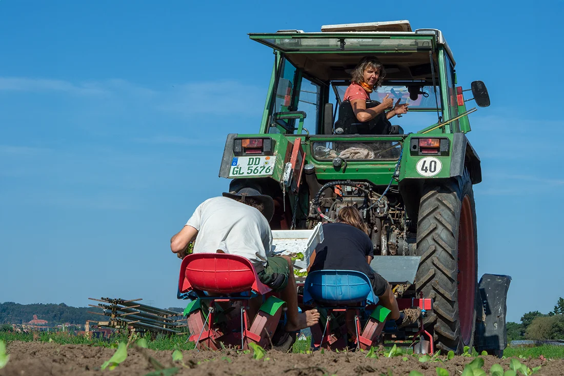 - Eine zusätzliche Pflanzmaschine erleichtert uns das Setzen von Jungpflanzen.