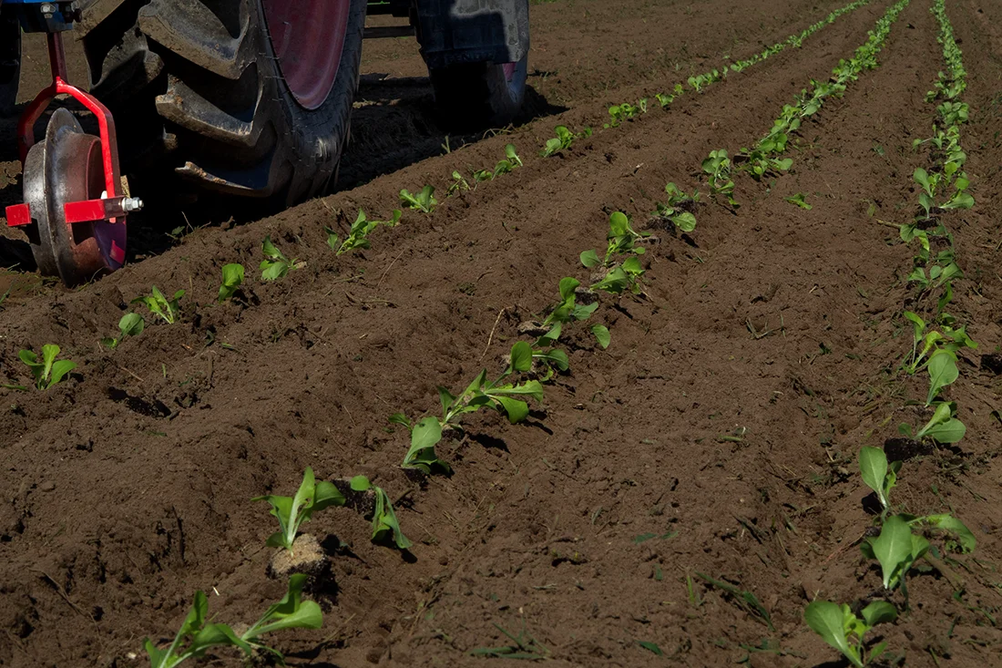 - Unsere zwei Fendt-Geräteträger sind wahre Multitalente, insbesondere beim Hacken der Gemüsereihen. Mit ihnen können wir besonders präzise arbeiten.